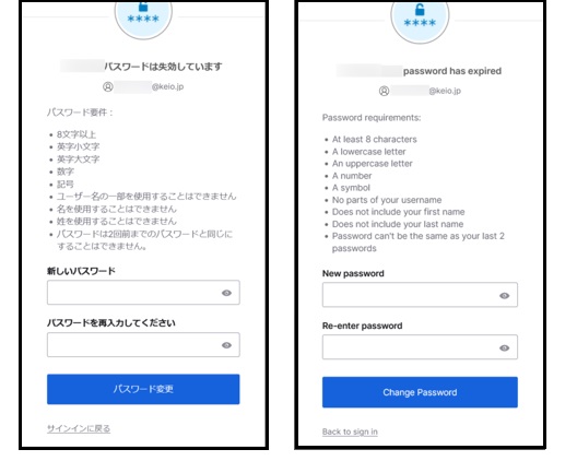 If you sign in with a password that has been leaked to keio.jp, you will be directed to a screen for a mandatory reset and re-etup. This feature is scheduled to be applied sequentially starting on Tuesday, September 30, 2025.